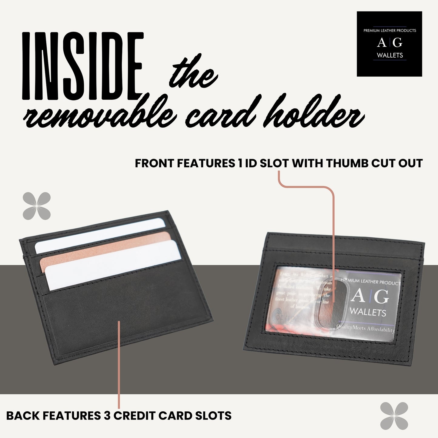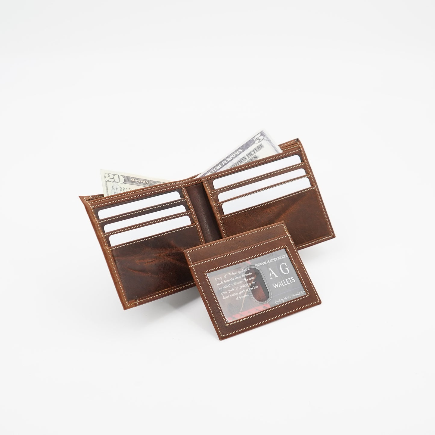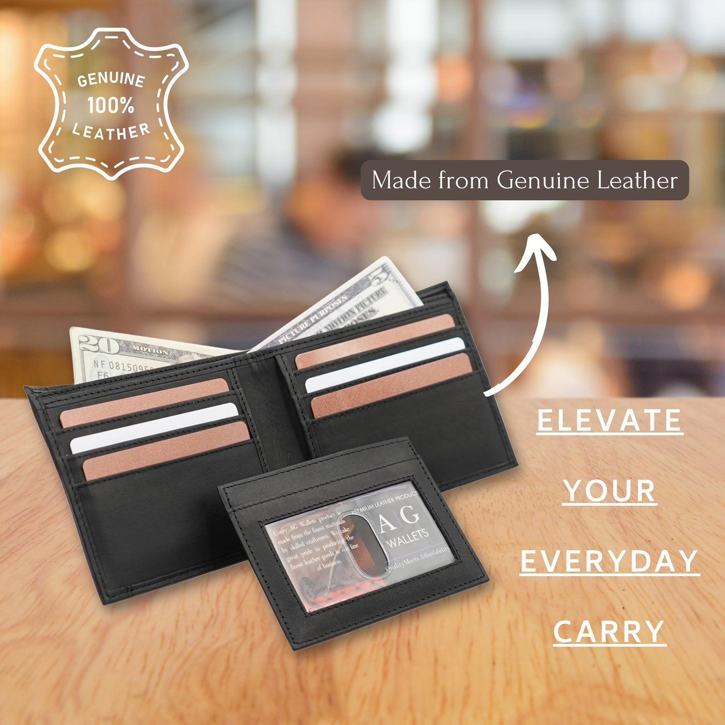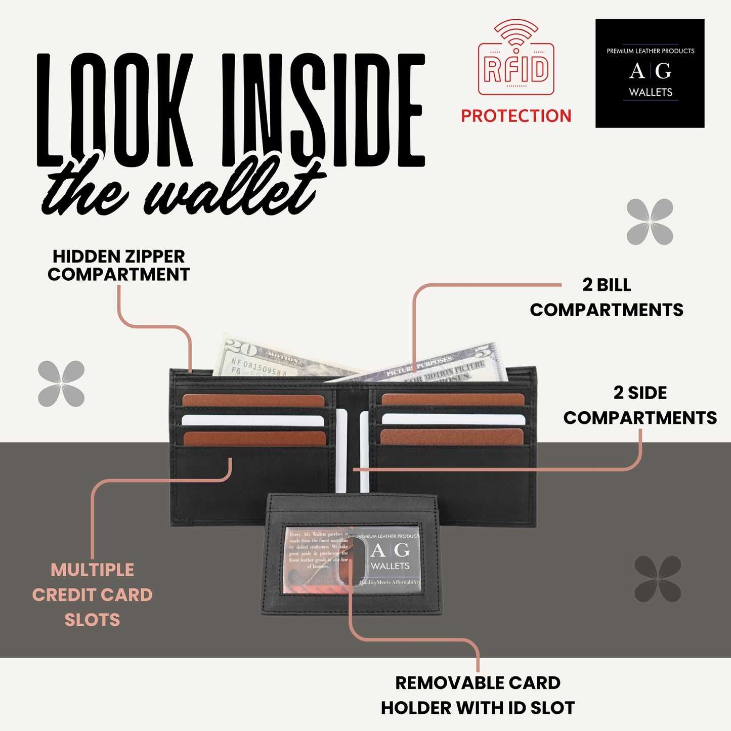 AG Wallets Leather Men's RFID Bifold Wallet with Removable ID Holder – Slim 2-in-1 Leather Card Organizer