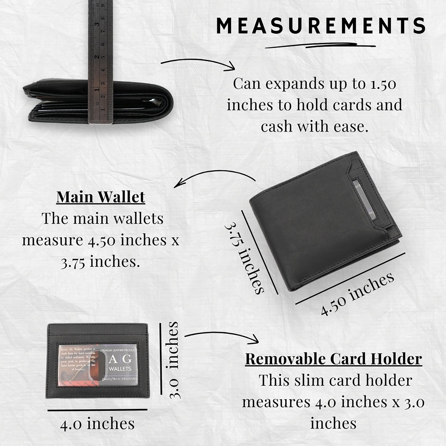 - Compact & Functional: Measuring 4.50" x 3.75" (closed) with a removable insert sized at 4" x 3", this slim bifold wallet with an ID window keeps your cards and cash organized without adding bulk.