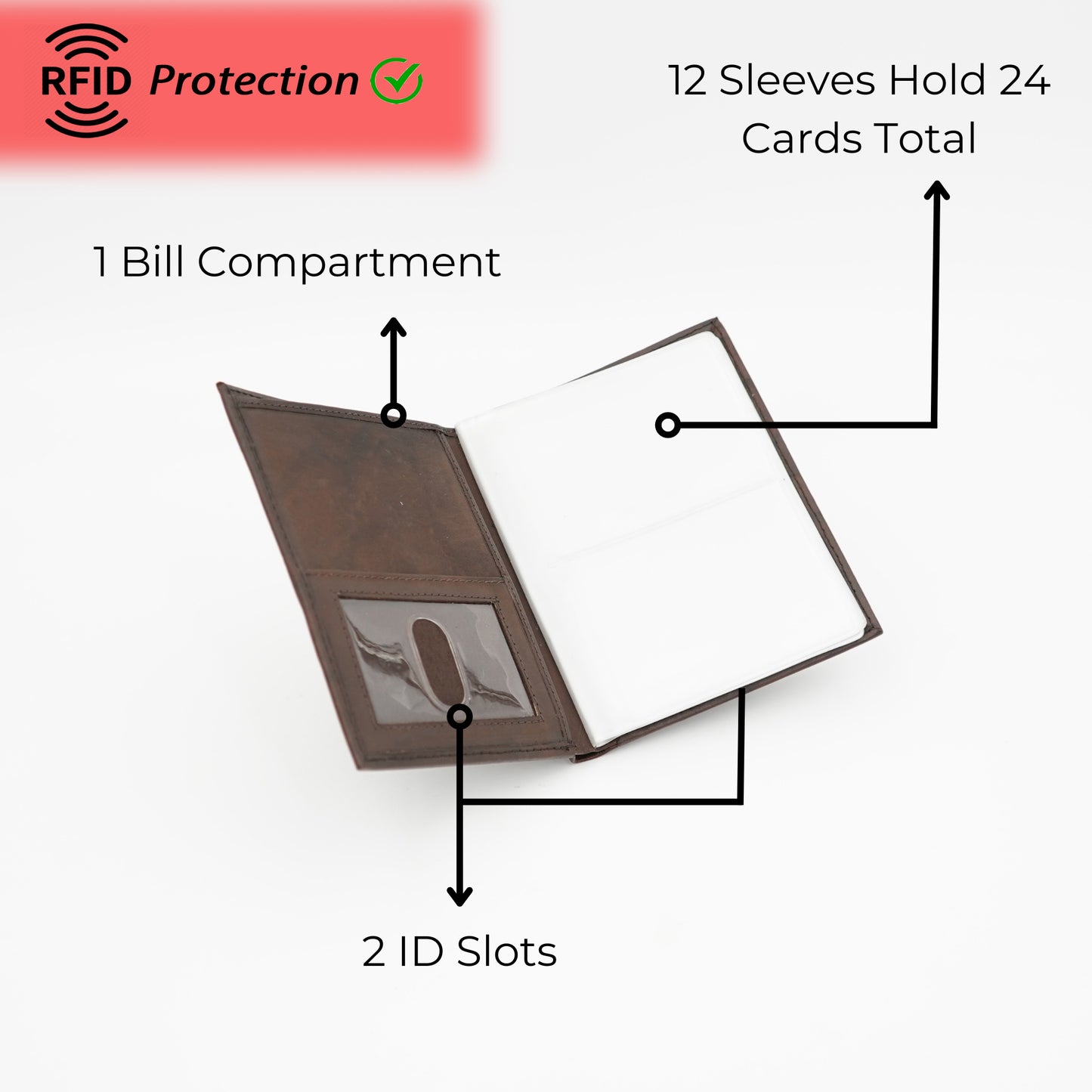 AG Wallets Men’s RFID-Blocking Leather Wallet – 24 Card Capacity, 2 ID Windows & Sleek Hipster Design